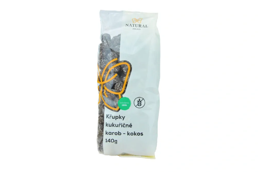 Natural Jihlava křupky kukuřičné karobové s kokosem 140gskladem 2 ks35 Kč/ ks31 Kč bez DPH