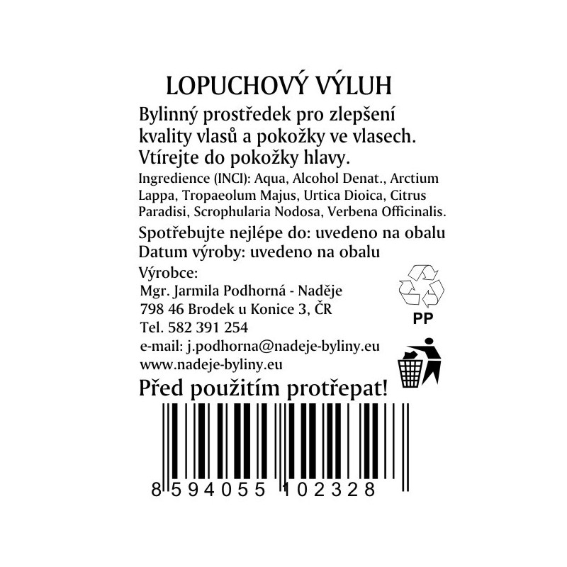 Výluh z kořene lopuchu s rozprašovačem 215mlna dotaz190 Kč/ ks157 Kč bez DPH